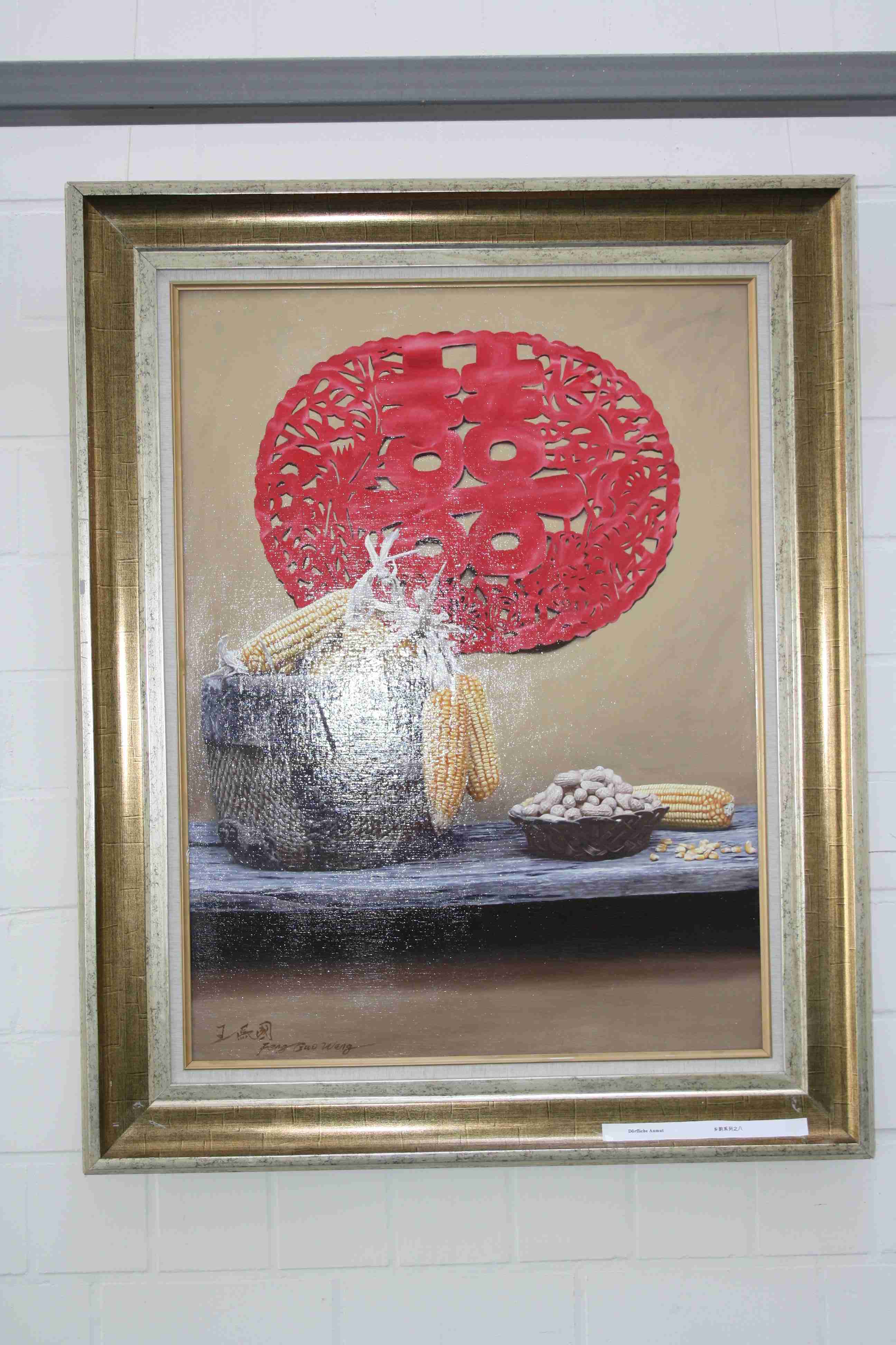 Wang Fengguo wurde im Juni 1962 in der Stadt Handan, Provinz Hebei, geboren. Im Verlauf von mehr als 30 Jahren hat er unbeirrt neue Wege auf dem Gebiet der Ölmalerei verfolgt. Er arbeitete mit großer Hingabe und entwickelte seinen eigenen Stil. Seine Anstrengungen mündeten in hervorragenden künstlerischen Ergebnissen. Ein dichter, realistischer Stil, eine klare und lebendige künstlerische Sprache sowie eine vollendete Ausdrucksfähigkeit zeichnen seine Bilder aus, auf denen er das schlichte, ungekünstelte Leben im chinesischen Dorf darstellt. Seine Stilleben sind ganz durchdrungen von seiner tiefen Zuneigung zum Landleben. In ihnen hat sich die kulturelle Seele des einfachen Volkes niedergeschlagen. Indem Wang die einfachen Dinge des Lebens darstellt, enhüllt er Erinnerungen und Sehnsüchte nach einer vergangenen Zeit. Und ohne dass es aufdringlich wirkt, verbindet er dies nahtlos mit den Vorstellungen des modernen Menschen. Seine Bilder leben nicht vordergründig von einer originellen Idee, sondern von der sensiblen Beobachtung und der Wiedergabe. Das Spektakuläre spielt keine Rolle. Jeder Schritt ist überlegt. Mit Empfindsamkeit und ohne Ausschmückungen lässt er aus der Ölmalerei den ihr inne wohnenden Geist und Charme, ihren Sinn und ihre Manier hervortreten.